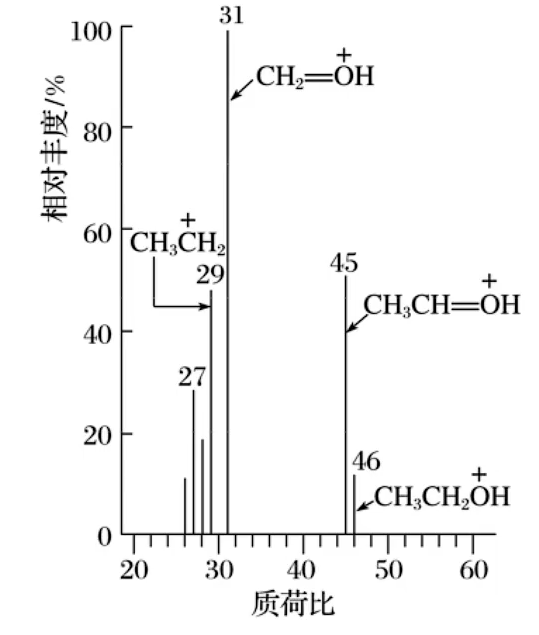 如图所示为未知物 A 的质谱图,质荷比最大值为 46,表示未知物 A 的相对分子质量为 46