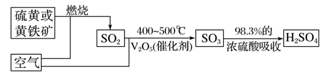 )或其它含疏物(如黄铁矿 )为原料来制备硫酸。金属冶炼时产生的含二氧化硫废气经回收后也可用于制备硫酸 或 (一般工业上不用水吸收三氧化硫,而是使用98%浓硫酸,因为三氧化硫溶于水大量放热,水沸腾形成酸雾,酸雾随着气流离开,减少对三氧化硫的吸收效果)