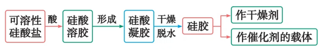 ,可制得硅酸胶体(凝胶)或沉淀 制备硅酸的原理是“强酸制弱酸”,这一原理可用来设计酸性强弱比较的实验,如:证明盐酸 > 碳酸 > 硅酸